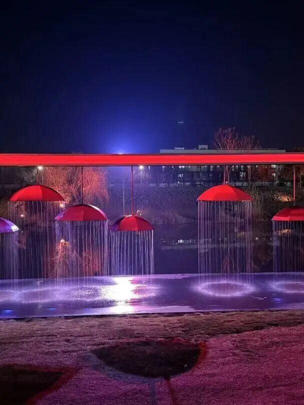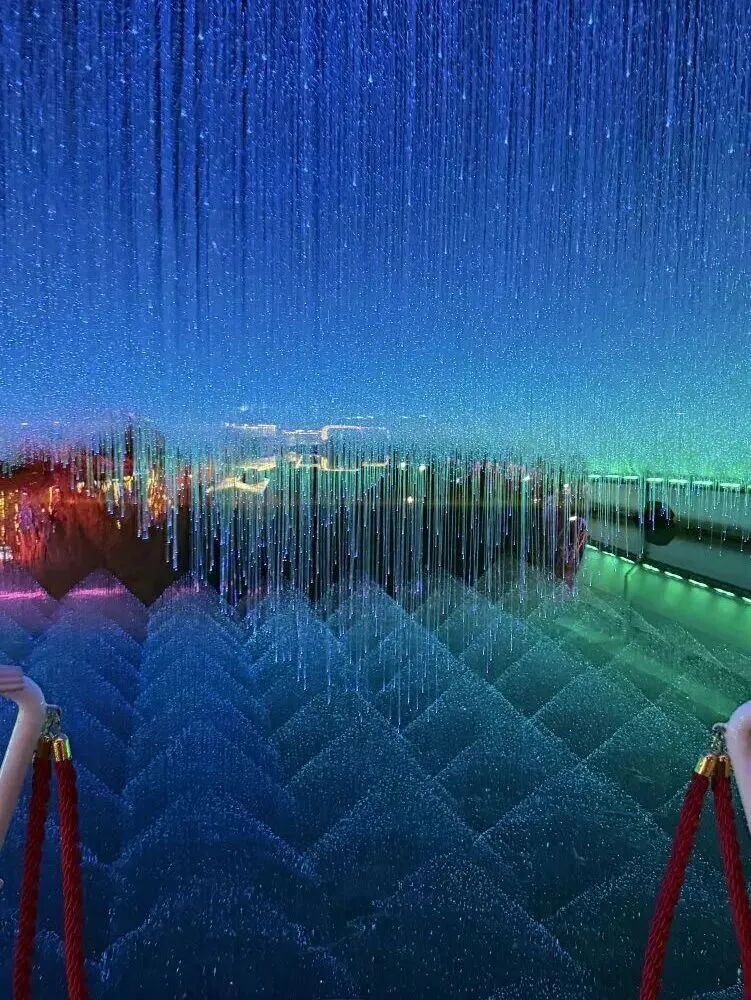 B线(体育公园码头) 则通过激光触发技术与动态频闪灯,打造"雨中曲"的数字互动场景,儿童伸手即可"触碰"光影雨滴,这种高参与度的设计让照明成为连接人与数字场景的交互媒介。