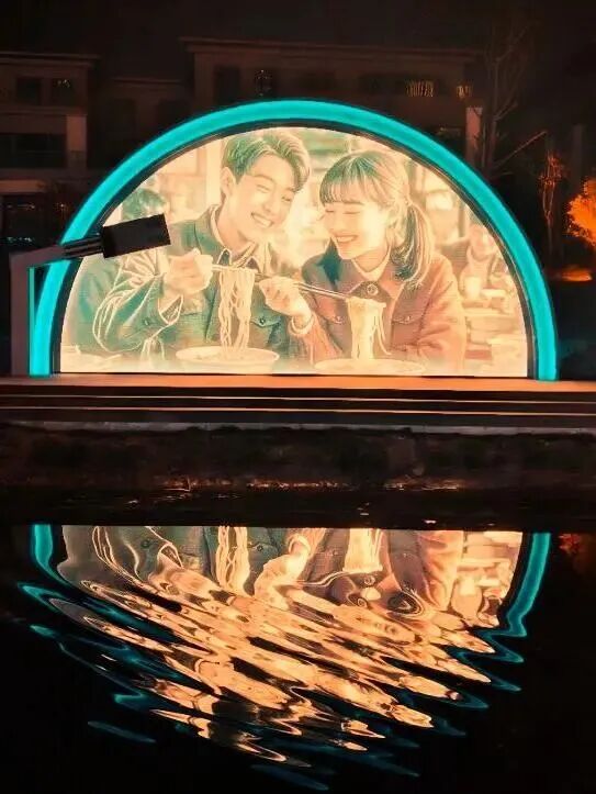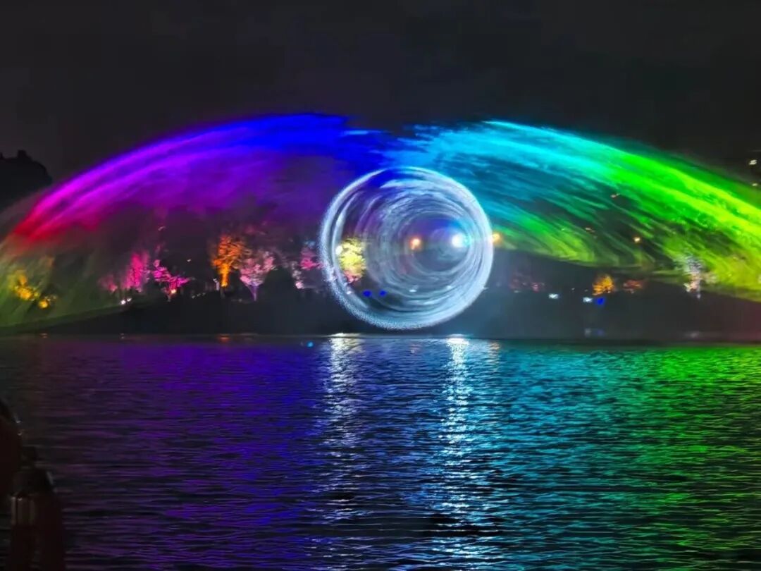 一是技术融合催生场景创新。 项目并非简单叠加数字技术,而是将照明作为数字信号的物理载体,实现全息投影与实体光影的无缝衔接。例如无人机编队既是移动光源,也是数字像素点的集合;水幕投影既是显示终端,也需要定制化照明控制亮度与对比度——这种"照明+数字"的深度融合,打破了传统照明的技术边界,使其成为数字文旅场景的核心基础设施。
