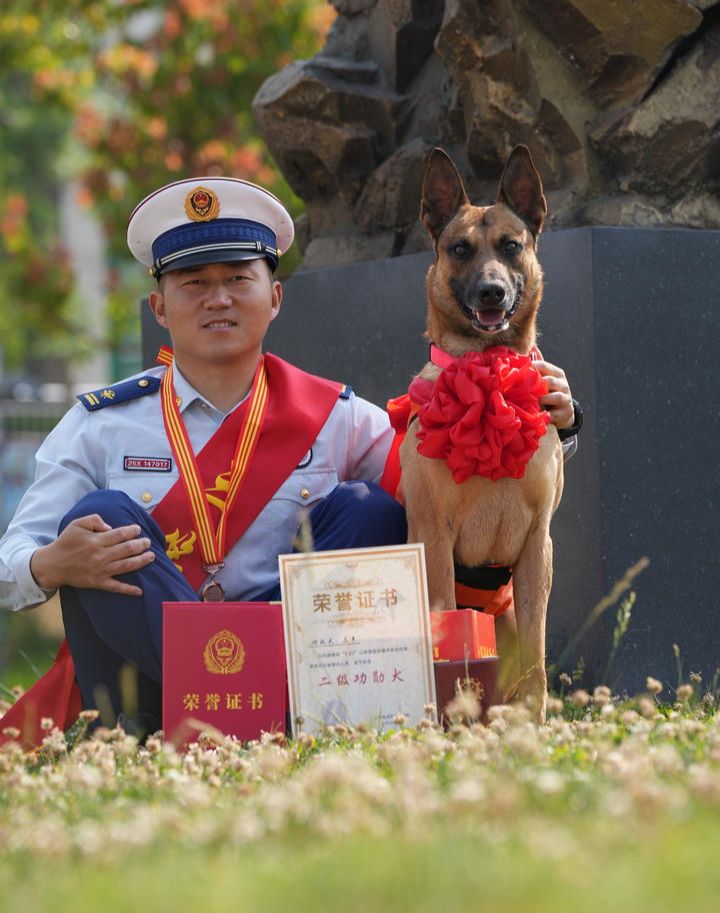 “这非常考验犬在体力消耗后的持续搜索能力、强大的内心和跨越障碍的灵活性。”王坤说,“有的犬跑完就不想干活了,但‘三丰’的工作欲望始终很高,这正是它能夺冠的关键。”而这项技能的实战价值,在去年云南昭通“1·22”山体滑坡救援中得到了体现。在那场44人遇难的特大灾害中,“三丰”凭借其精准示警,成功定位了6具被困人员遗体,因此被云南省消防救援总队授予了“二级功勋犬”称号。