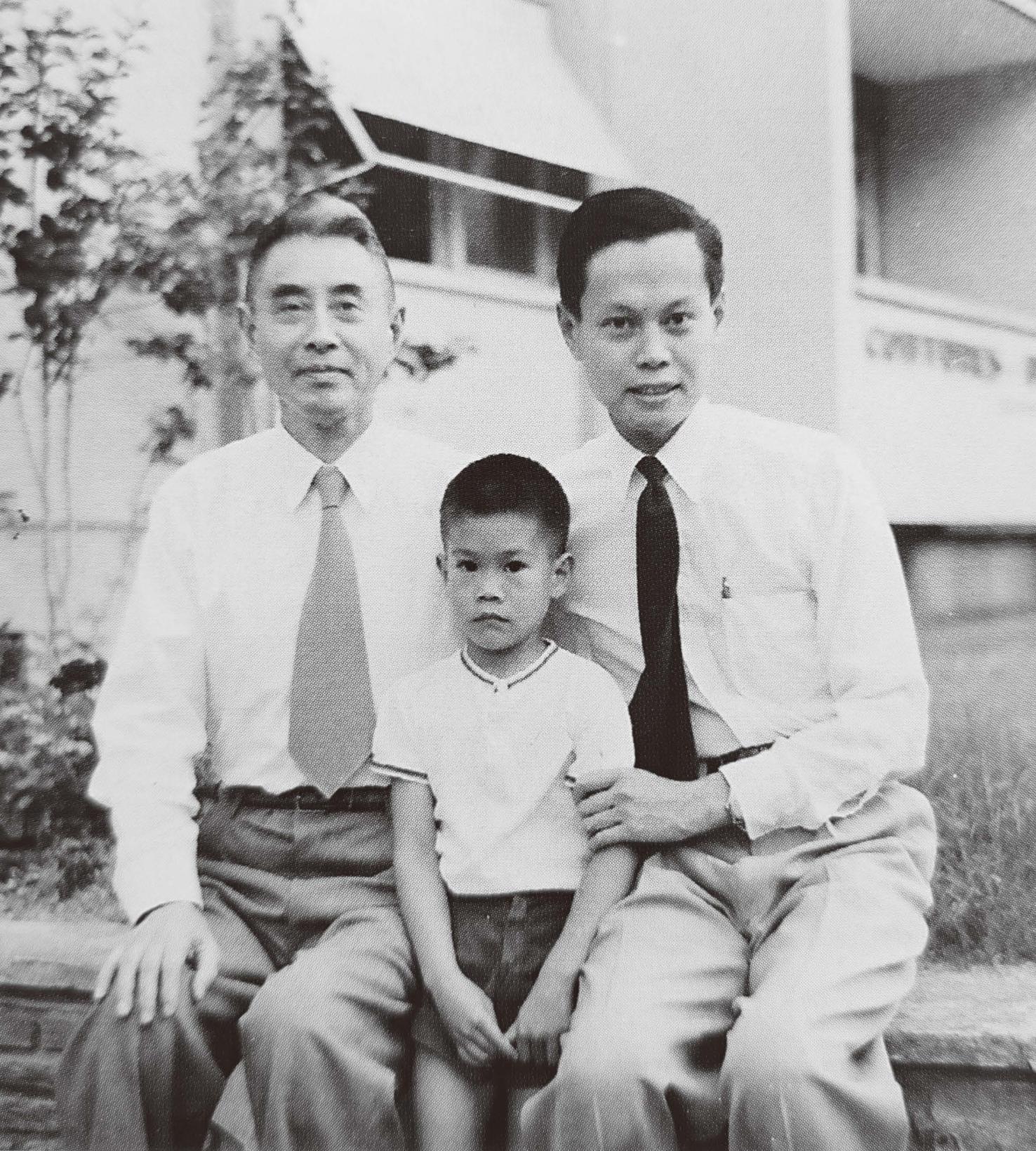 1957年,杨武之(左)与杨振宁、长孙杨光诺在日内瓦团聚。(商务印书馆2021年出版《杨振宁传》(最新增订版))