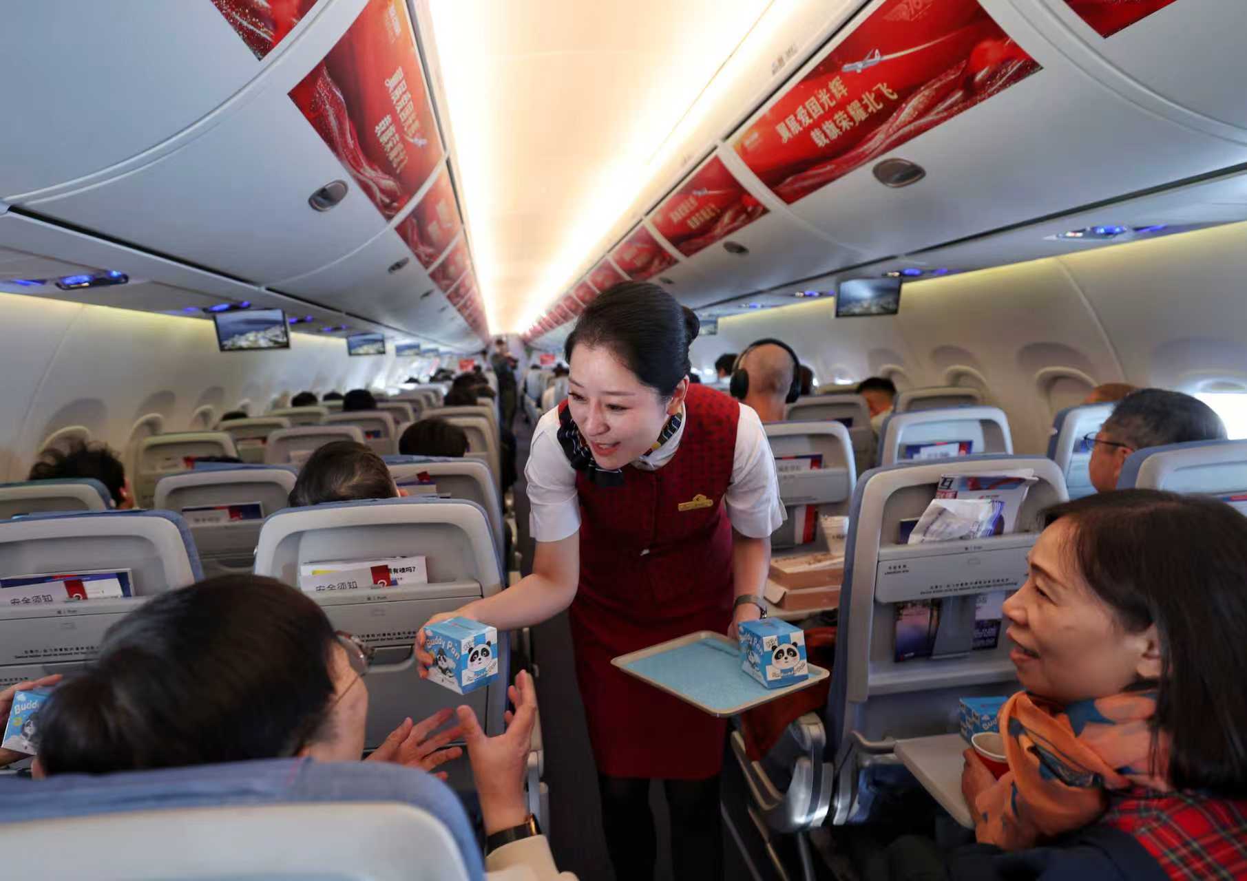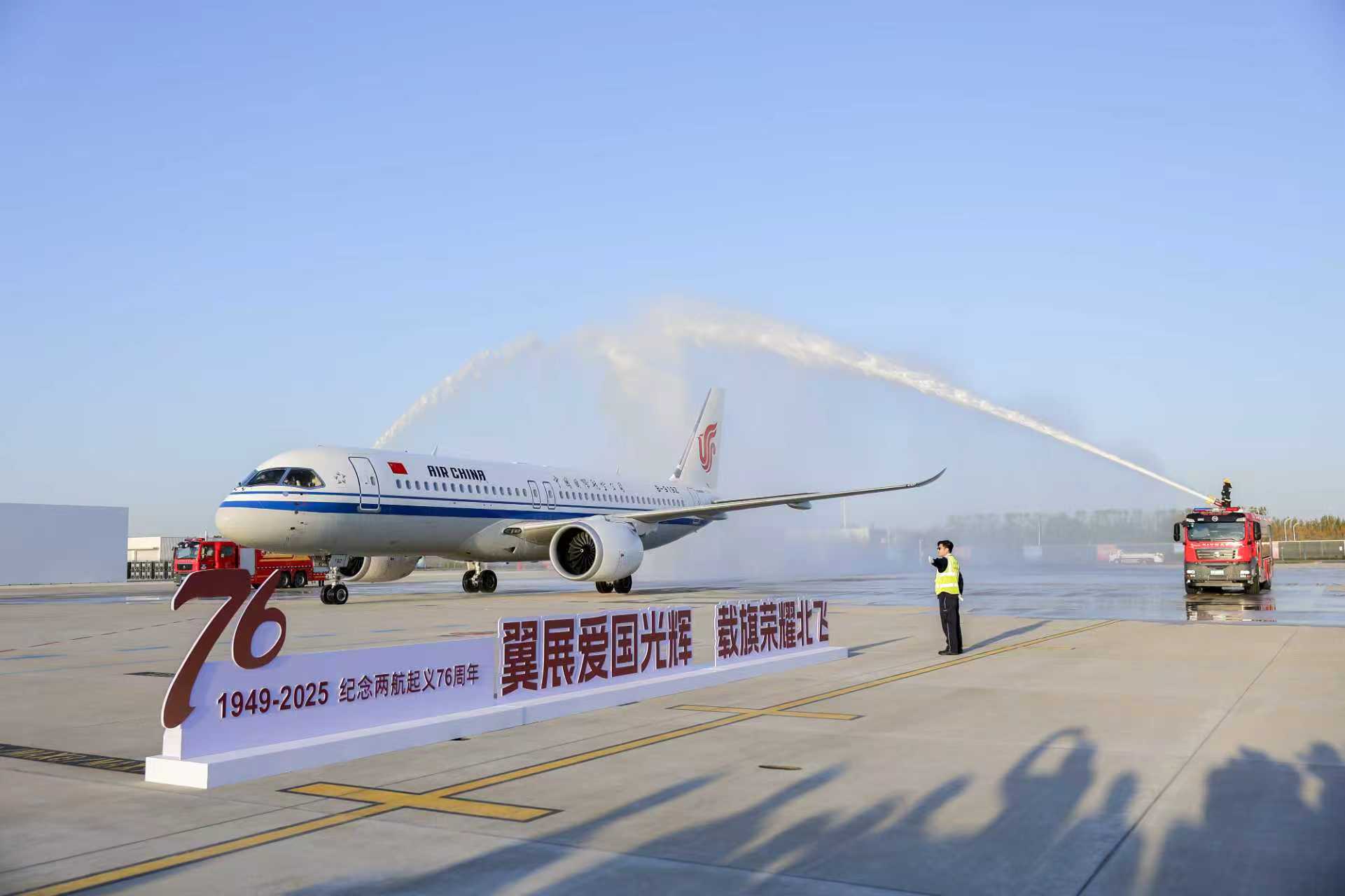 国航C919重飞“两航起义”北飞光辉航程主题航班。陶冉 摄
