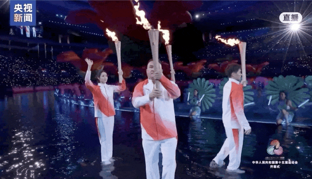 昨晚(9日),第十五届全国运动会在广东奥林匹克体育中心体育场盛大开幕。主火炬点燃仪式上,粤港澳三地的火炬手,手持圣火,踏浪而来。