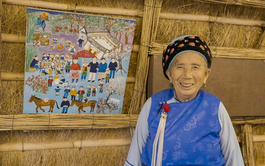 王秉秀家住云南省大理白族自治州大理市双廊镇,她原本是一个地道的农民,活到古稀之年,她的人生相册里满是日子艰辛的印记,与画画更没有任何交集。