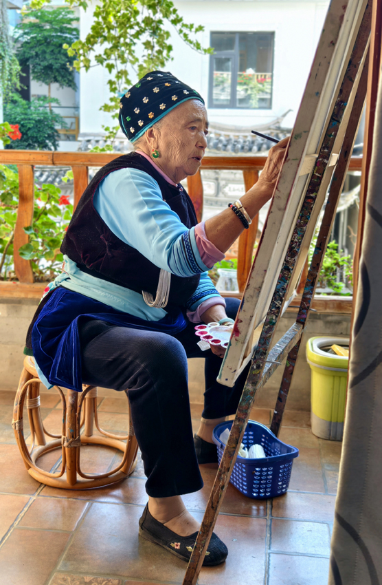 事实上,在双廊,王秉秀只是沈见华众多学生中的一员。截至目前,先后有超过20名中老年妇女跟随沈见华学画。