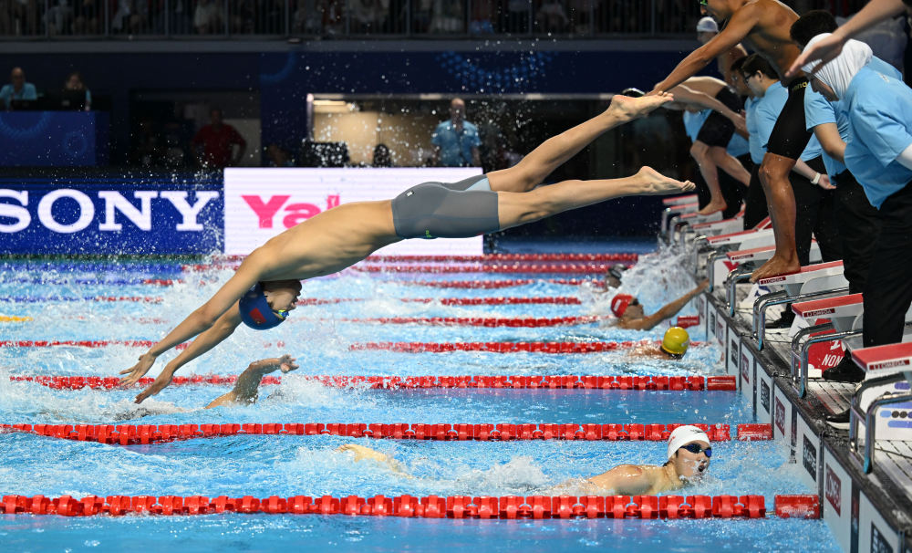 2025年11月10日,山东队选手张展硕在男子400米自由泳决赛中。新华社记者 杜宇 摄