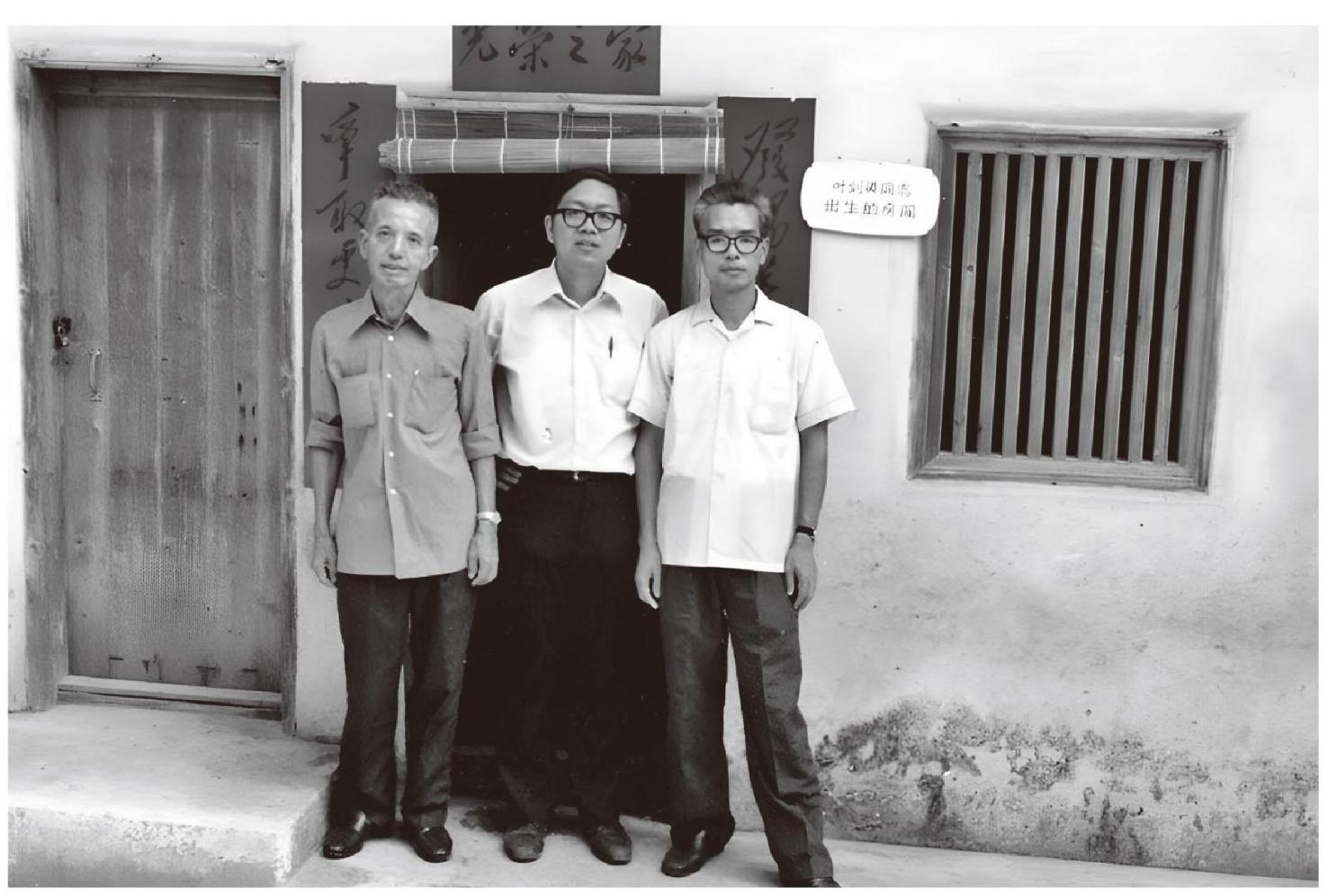 1979年,丘成桐(中)在广东祖宅门前与乡亲合影。