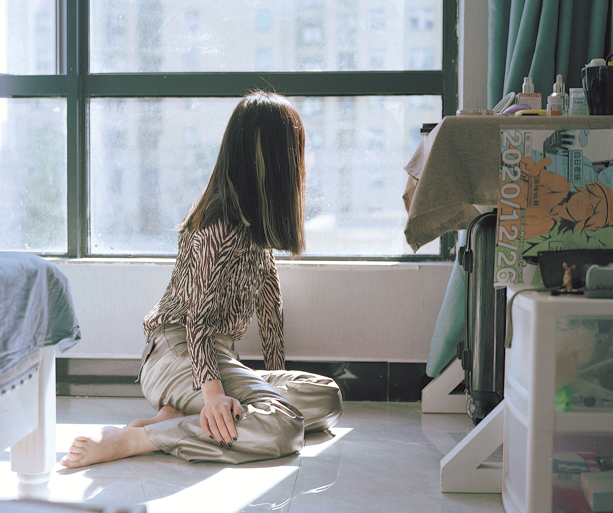 Le Ziyi's photography project features young people from diverse backgrounds, including (from left) a Chinese woman from Italy, a young woman gazing out of her home window, and an installation artist. LE ZIYI/CHINA DAILY