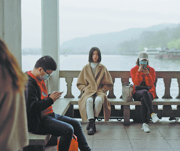 So, he brings the viewer nearer. Here, one can see a young woman curled up on a bed in a rented room, scrolling through her phone illuminated only by a desk lamp. In another photo, a Chinese woman who grew up in Italy sits in a pavilion by West Lake in Hangzhou, Zhejiang province. The bustling crowd around her contrasts sharply with the alienation written on her familiar features.
