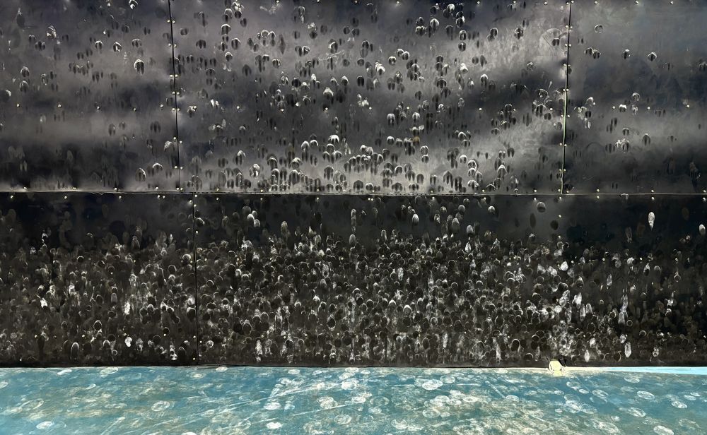 从墙脚向上,斑点的痕迹由多到挤在一起,到渐渐稀疏——日复一日的投掷,就这样定格在了时光的河里。