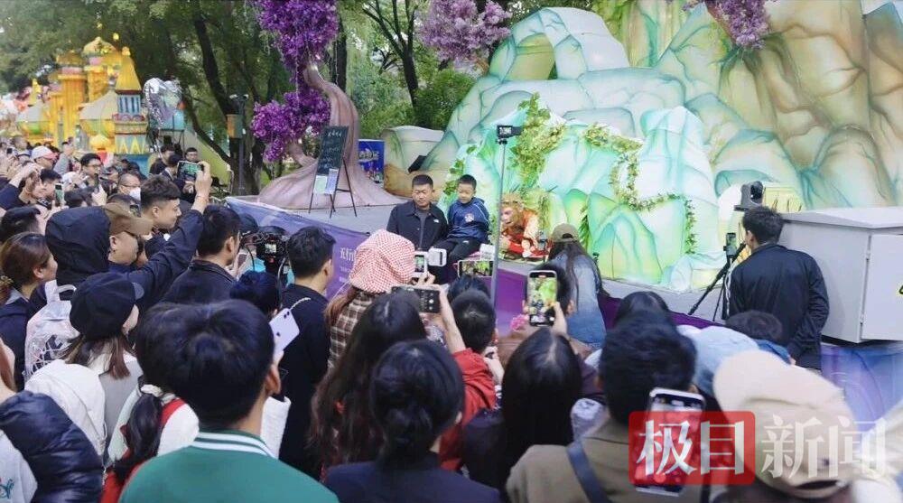 2023年底,王铁柱刚到长春动植物公园趴在“五行山”下扮演孙悟空时,在东北冬天的风雪中只有零星的游客路过;2025年国庆假期,来自全国各地的游客都想看看“雪饼猴”,现场近万人排队观看,大部分家长肩膀上“长”满孩子,也有游客爬上树看演出。面对游客的热情,尤其是小朋友的热爱,王铁柱对极目新闻记者说,他最担心的就是孩子安全的问题,“我们演员也是服务行业,就要想游客之所想,如果孩子走丢了大家肯定着急”。困扰之余让他感到开心的是,“雪饼猴”的爆火意味着能有更多人把目光、把这份激情投入到长春,“把这里当成一个打卡点,在假期带着孩子、老人过来游玩。这对于文旅来说是很大的一种带动,对于我们演员来说也是莫大的欣慰。”