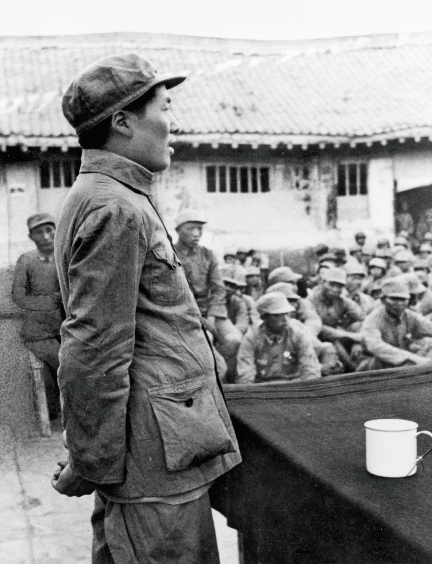 1938年,毛泽东在抗日军事政治大学作《论持久战》报告。(视觉中国)