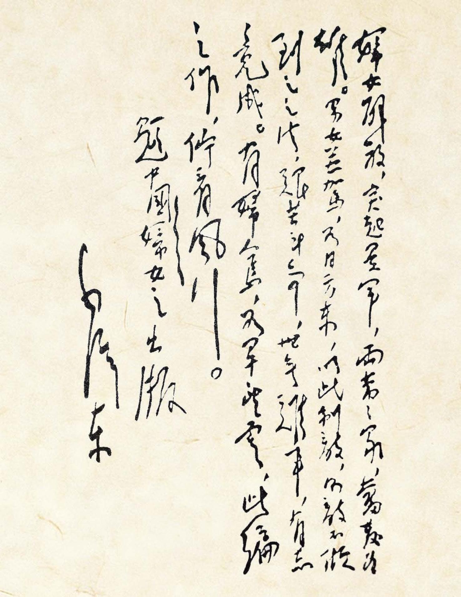 《中国妇女》创刊号题词手迹。(中央档案馆编《毛泽东题词墨迹选》)