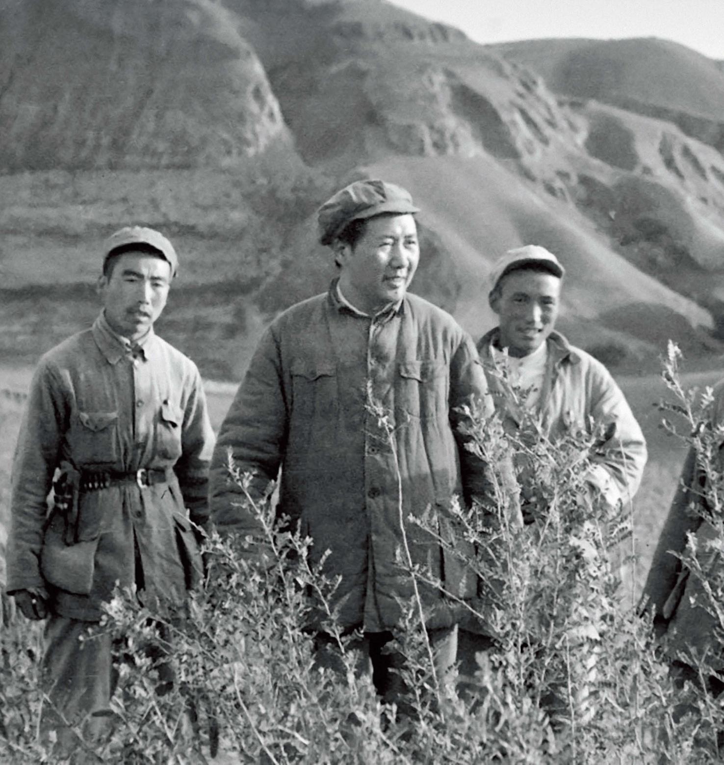 1947年,毛泽东(中)在转战陕北的途中。(新华社发)