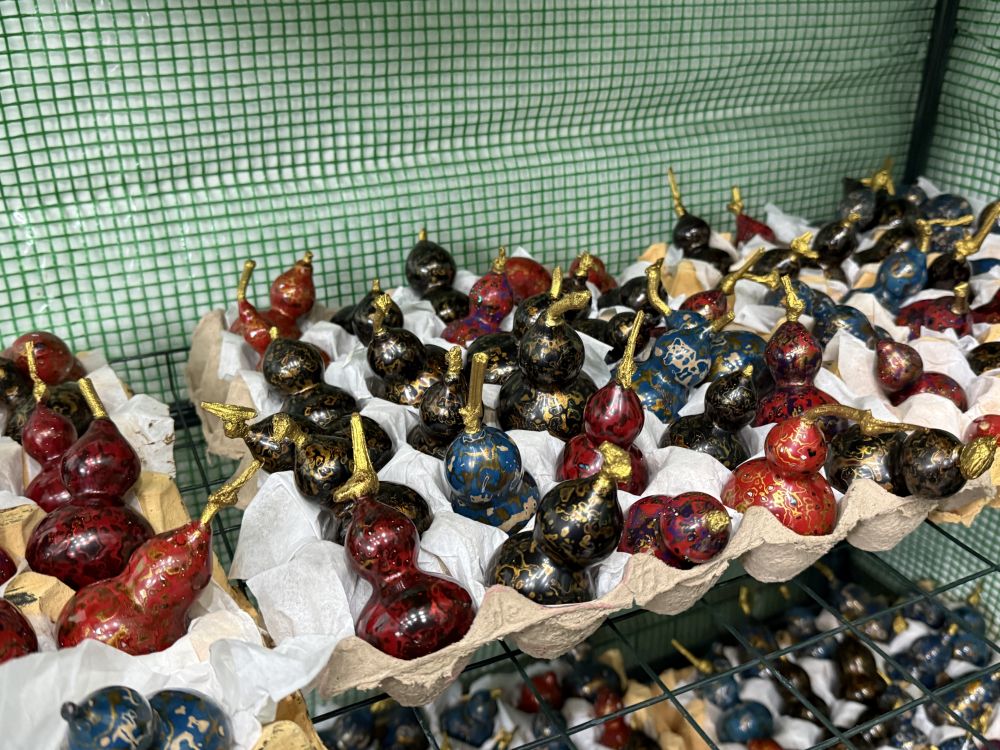大巴山深处,重庆市城口县“忘我”大漆艺术空间内,漆香弥漫。数名漆艺匠人围坐一团,一个个不足半个巴掌大的葫芦摆件在他们手中打磨、上漆、冲洗,流畅的笔触勾勒着灵动线条,山川流云纹样初现……