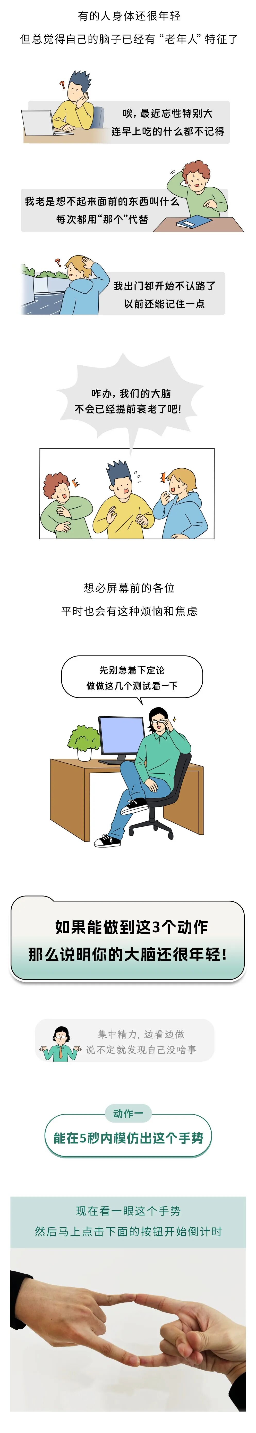 原标题:能做到这3个动作,说明你的大脑还很年轻!