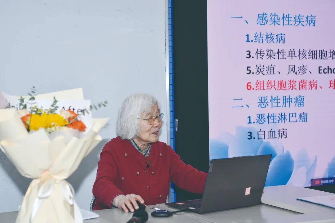马玙那天的授课内容是肺结核的诊断与鉴别诊断,课件里有她自1955年工作以来收集的影像资料、多年积累的典型病例,还有她在美国作为访问学者期间保留的一些特殊患者的资料,以及最新中英文文献中有意义的病例。尽管年事已高,马玙对授课内容仍牢记于心,清晰地讲述每个病例的基本情况和鉴别诊断要点。