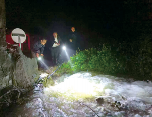 2025年汛期,李世昭深夜在紫溪乡巡查防洪隐患点。