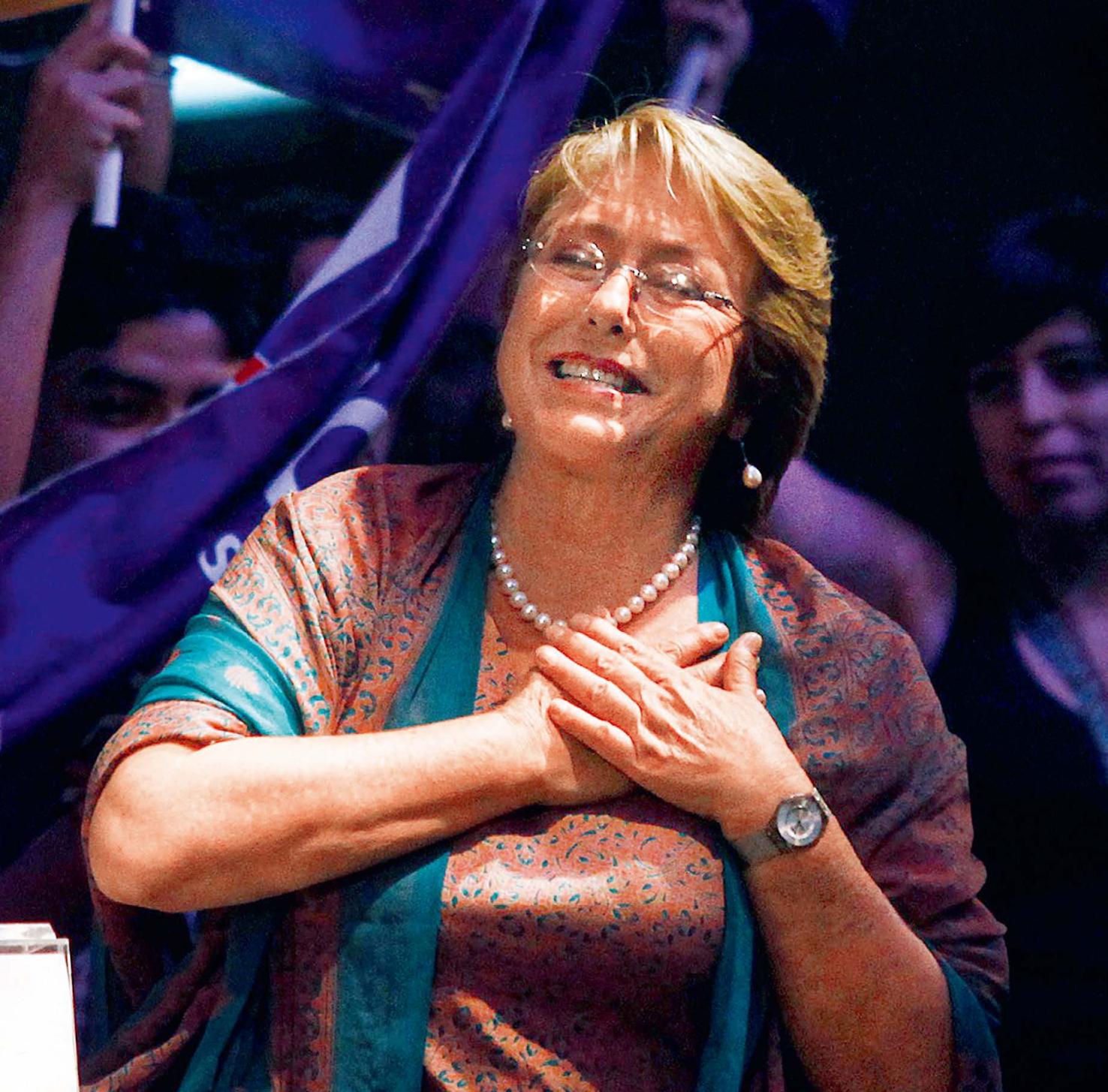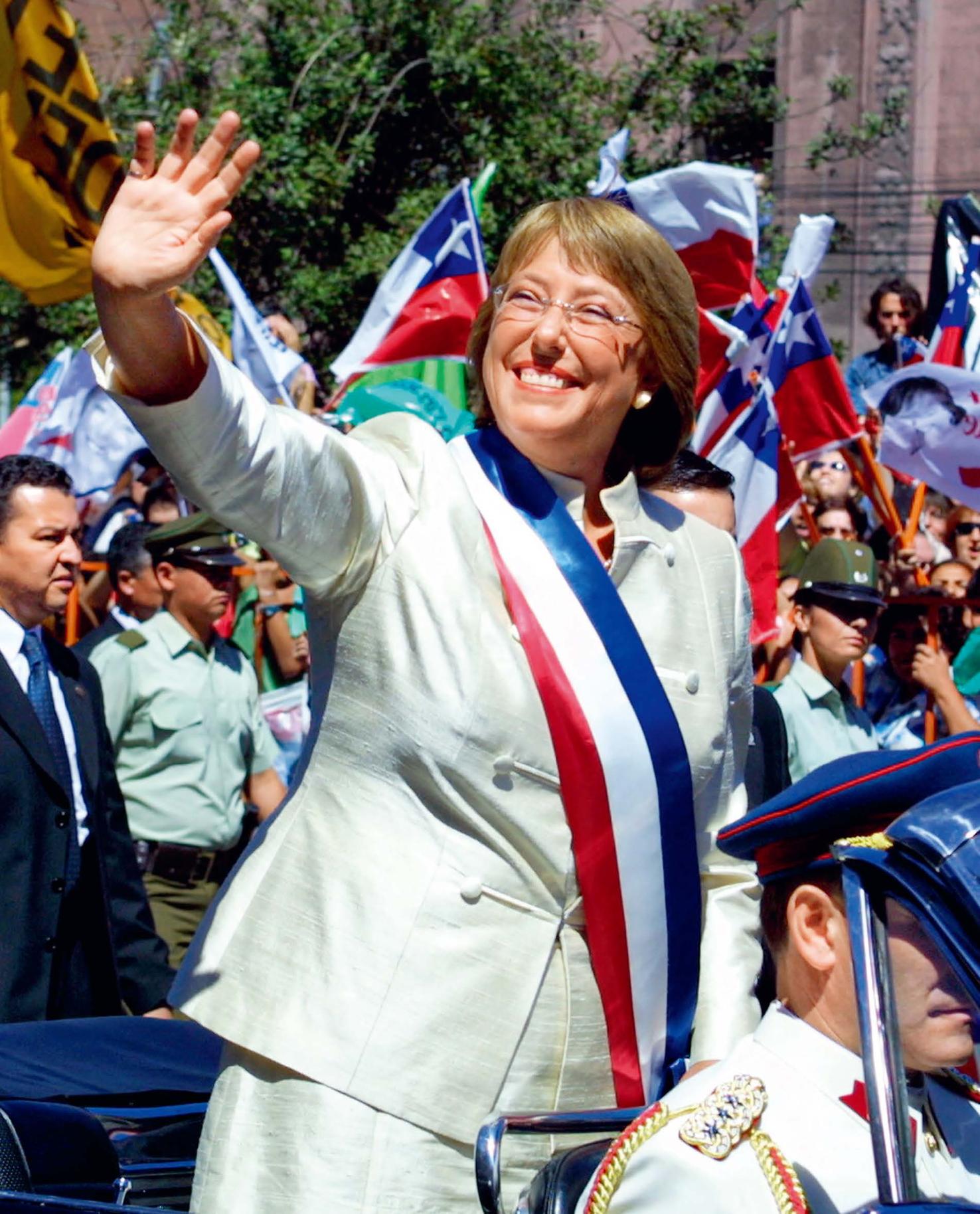 2006年1月15日,巴切莱特成为智利历史上第一位女总统。2010年她卸任时,民意支持率高达83%。根据智利宪法,总统不得连选连任,但可以隔一届后再次竞选。2013年,巴切莱特以比第一次竞选时更高的得票率再次当选总统。