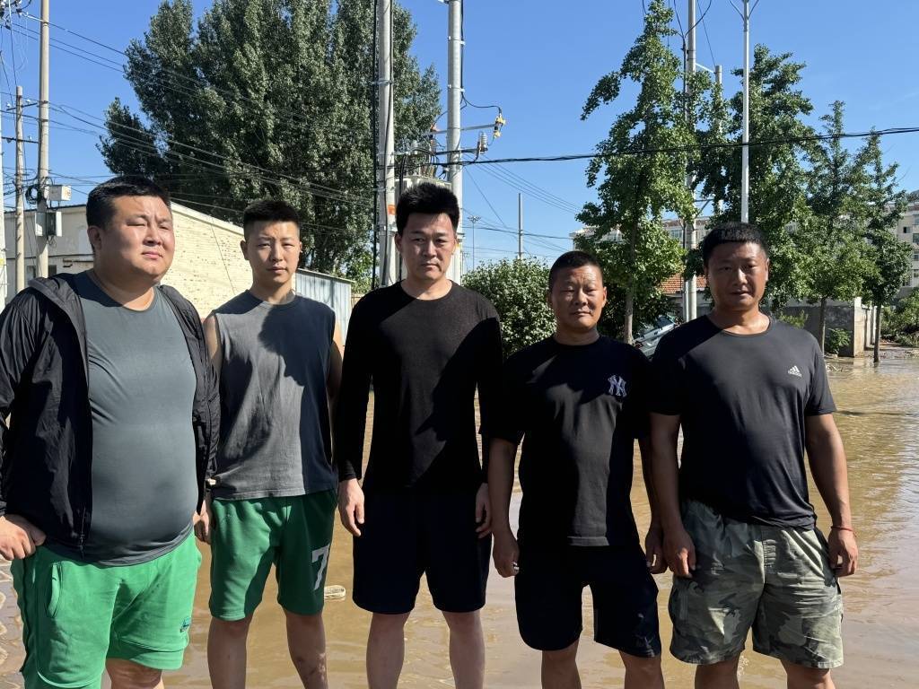 7月28日,王天宇(左一)等参与救援者合照。受访者供图