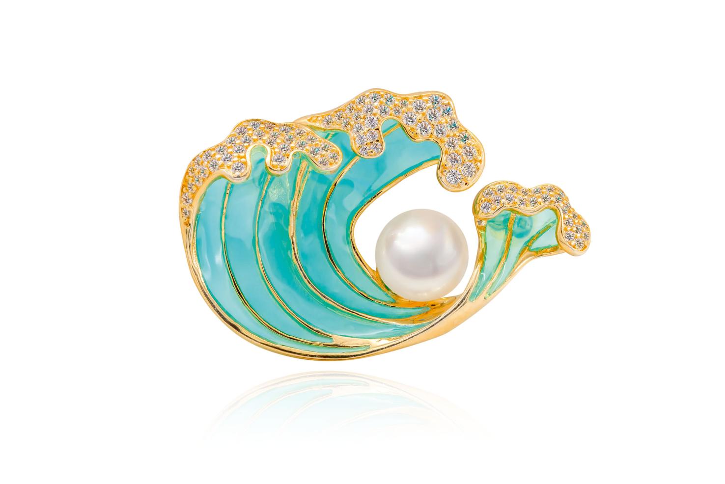 “逐浪”珍珠胸针。