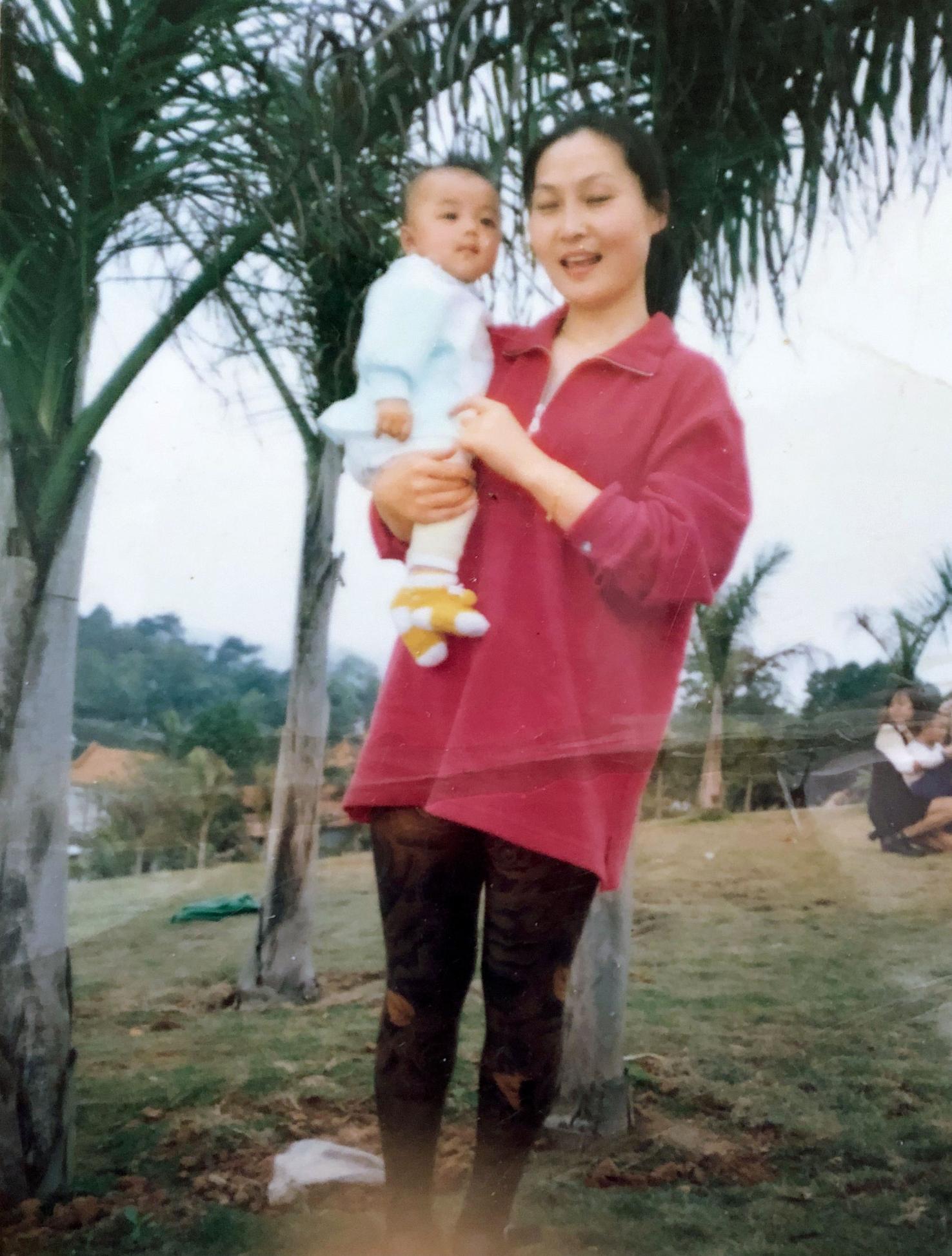图为儿时的刘景扬与母亲合影。(受访者供图)