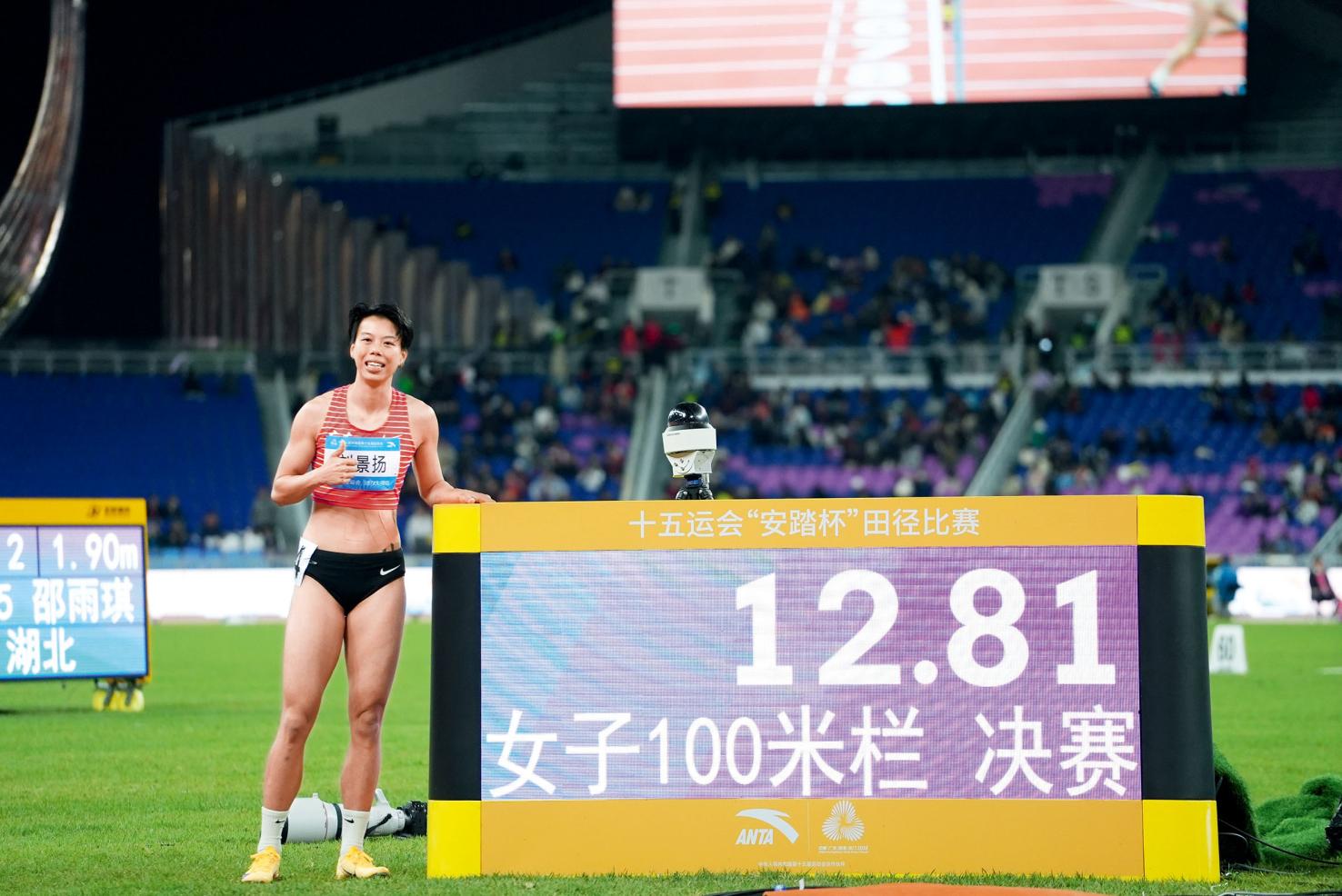 “12秒81!第一名,广东队刘景扬!”