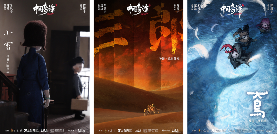 · 《中国奇谭2》分集《小雪》《三郎》《大鸟》海报。