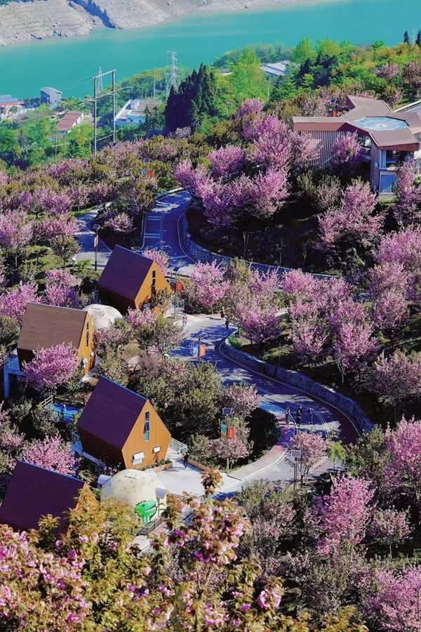 每年四月,是樱花里最灿烂的季节,樱花林迎来盛大花期。金色的阳光洒满山谷,繁花如云似霞,团团拥簇,花枝窈窕粉嫩,在山间的微风中摇曳,人字形的小木屋被她们紧紧拥抱。环绕的彩色小路,如音乐的韵律一样灵动而流畅。青年男女成群结队,服饰多彩,心手相牵,洒下一串串银铃般的笑声。那场景,是春日里最浪漫的诗篇。有姑娘说:“这世界不停地开花,我想取一朵,放进你的心里。”在花海之间,寻觅心灵的归属,每个瞬间,都是永恒的记忆。
