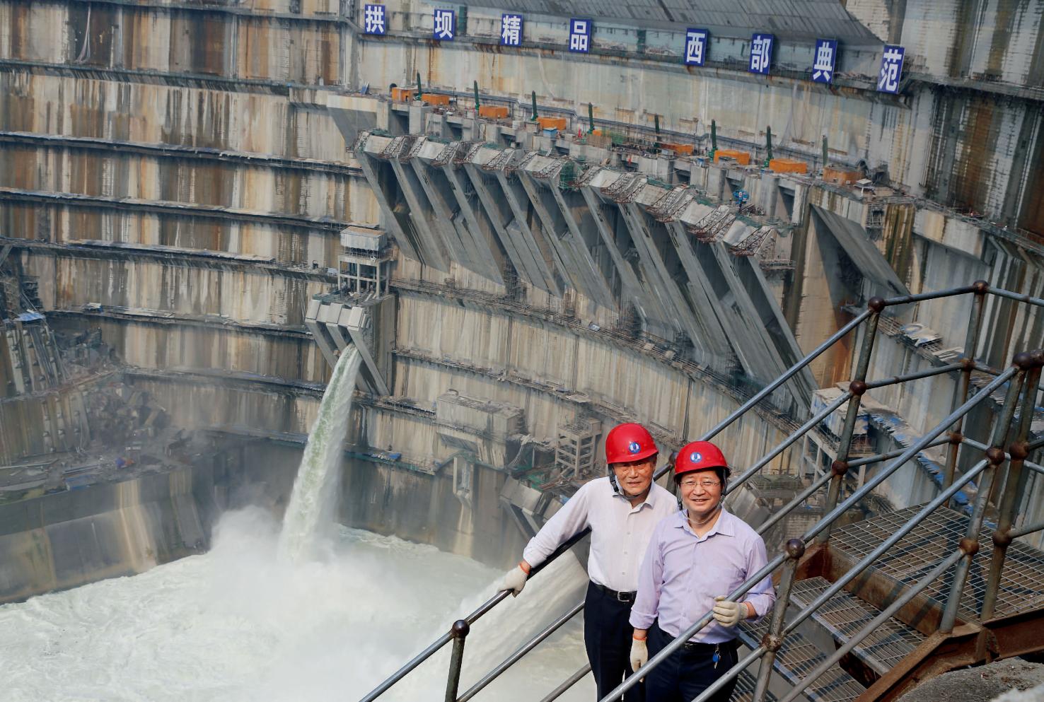 李文伟(右)和同事在溪洛渡水电站留影。(受访者供图)