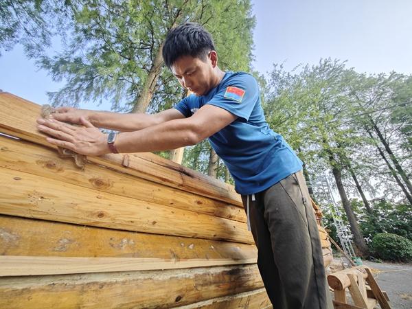 “不同部位需要不同形制的长木材,很多工厂嫌麻烦、耗工时,都不愿意接单。”为此,吴昊之边干边找,用了近一年时间辗转江苏、安徽等地,像收集拼图一般分批采购所需材料。又一次次登门拜访,与加工厂“软磨硬泡”,说服对方承接这些木材加工。