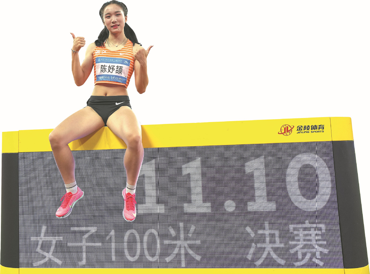 Already a rising star in Chinese sprinting, Chen made headlines at last year's National Games, held in the Guangdong-Hong Kong-Macao Greater Bay Area, where she claimed gold in both the women's 100m and 200m, becoming the youngest athlete in the 66-year history of the quadrennial event to win both sprint titles.
