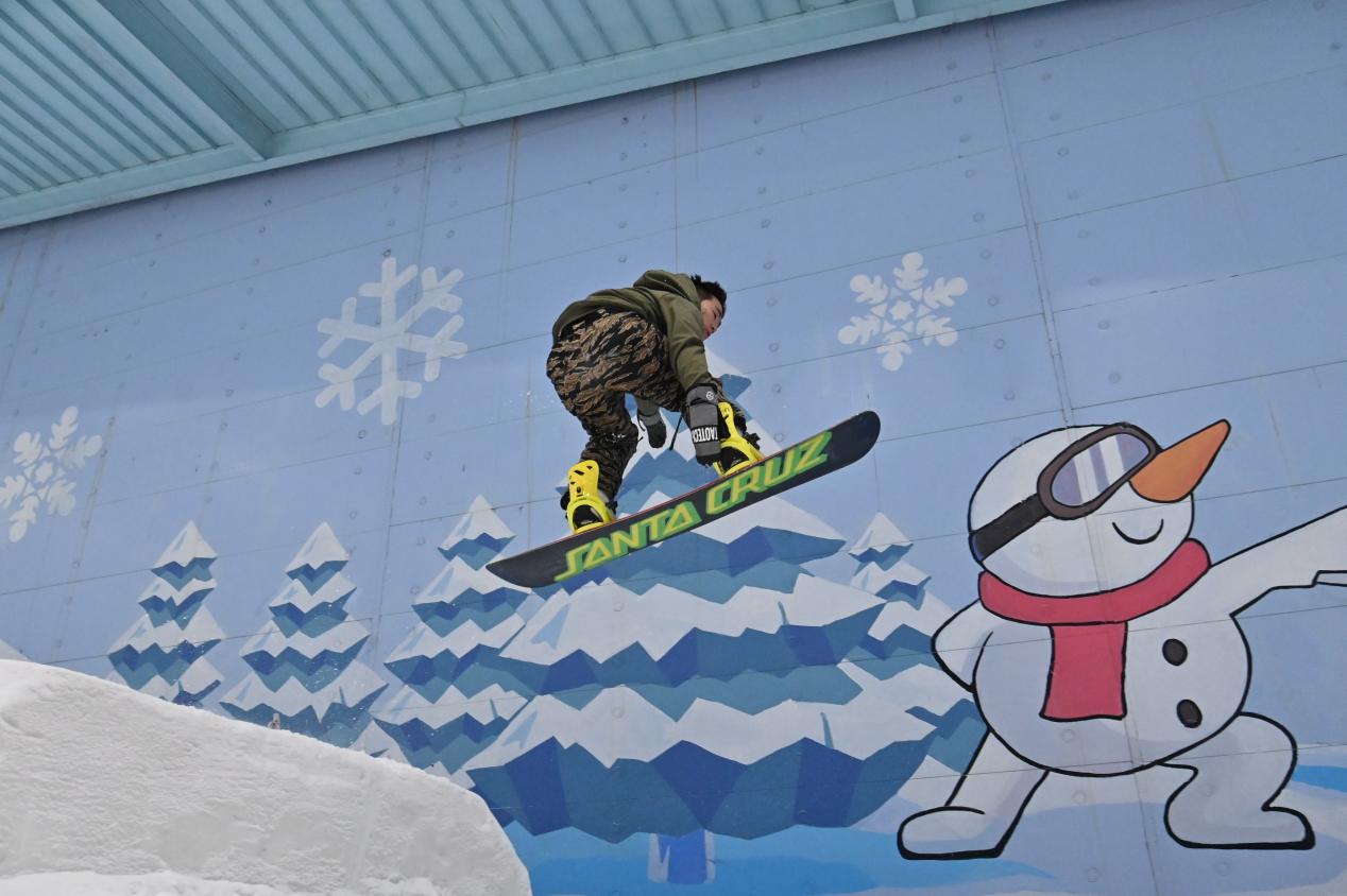 A man goes snowboarding in an indoor ski resort in southwest China's Chongqing municipality. (Photo/Sun Kaifang)