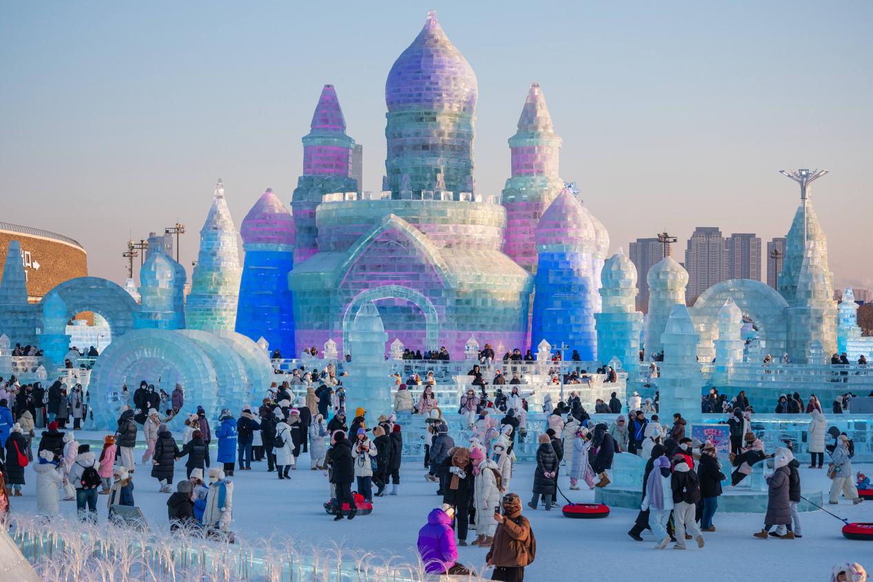 As night falls, the Harbin Ice and Snow World in Harbin, northeast China's Heilongjiang province transforms into a luminous spectacle, resonating with laughter and cheers from enthusiastic crowds. This vibrant scene transcends mere winter festivities -- it embodies the dynamic growth of China's surging ice-and-snow tourism. On Jan. 1, 2026 alone, Harbin received more than 1.4 million visitors, up 11.4 percent year on year.