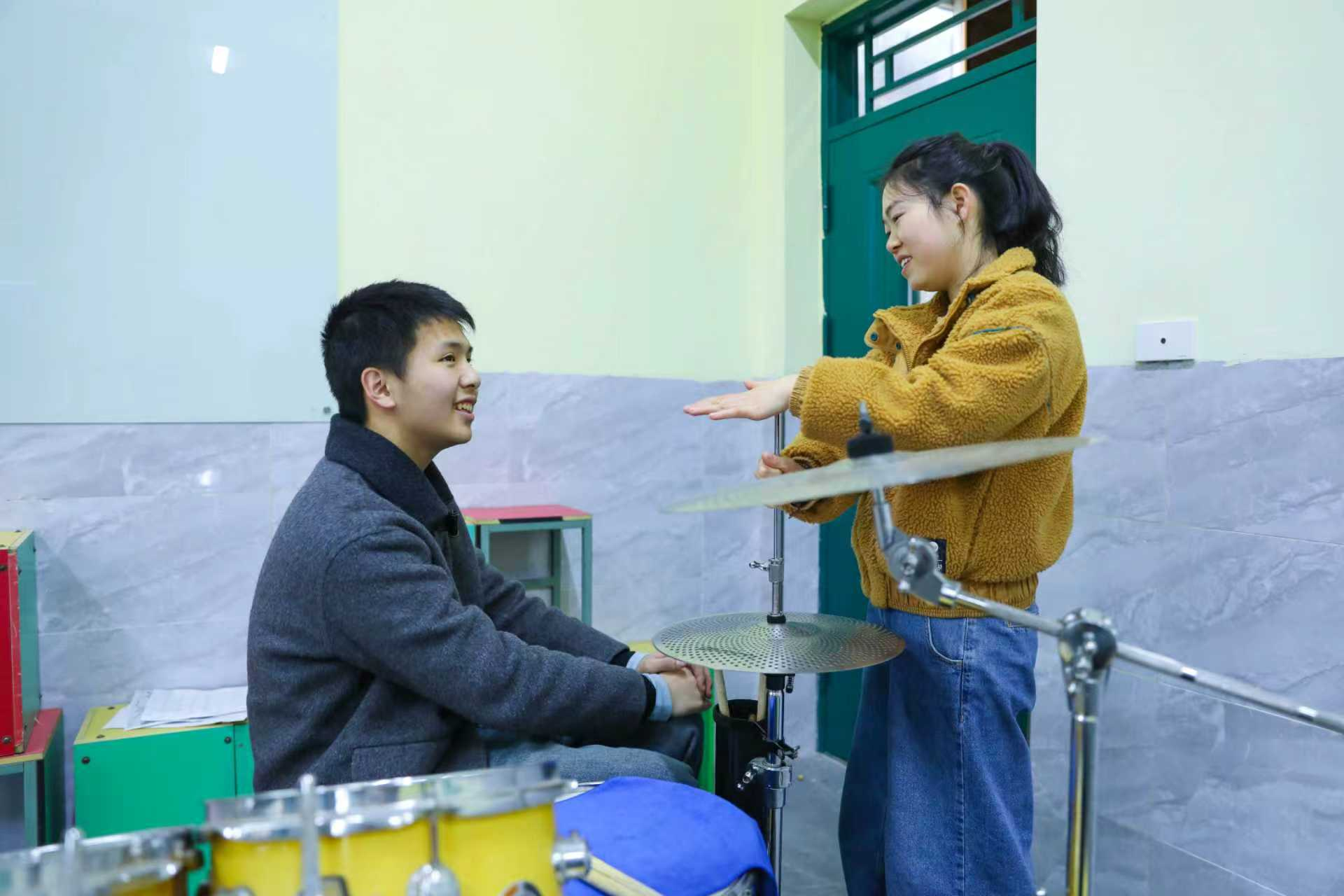 这支来自重庆云阳特殊教育学校的乐队,身后总是站着四位老师——抬手是和弦,挥臂是节拍。正是他们,将这几颗散落的星星连接在了一起。