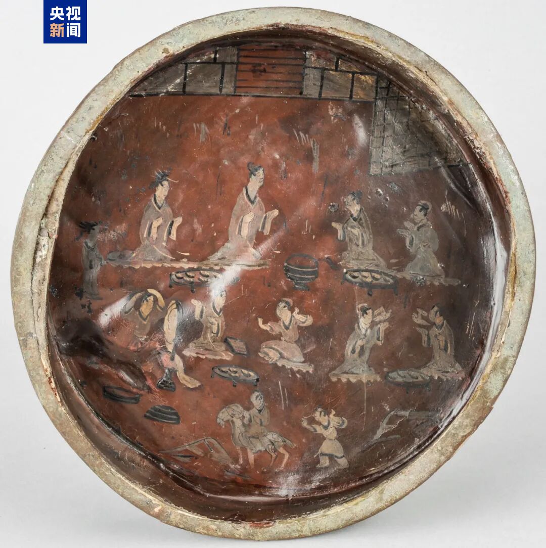 这件彩绘宴娱图漆盘