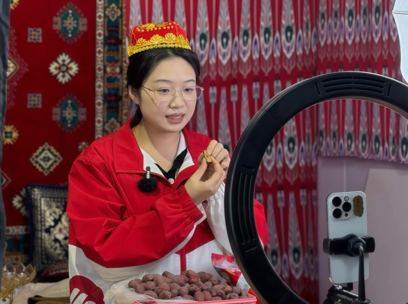 吴儒璇的解说词里,有产值、有数据、有政策,但真正让吴儒璇动容的,是数据背后一个个活生生的人。是“李小疆”的李博,从一张办公桌一台打印机起步,到如今年销售额1400万元,把阿克苏苹果、核桃等农产品送进千家万户;是快手网红米尔扎提·喀米力,从杭州回到家乡,一部手机、三十万粉丝,一年卖出八百多万的核桃与苹果;是那些参加了“蒲公英计划”培训的返乡创业青年,在直播间里,从腼腆到熟练,把家乡的甜蜜通过屏幕传递到全国的各个角落。