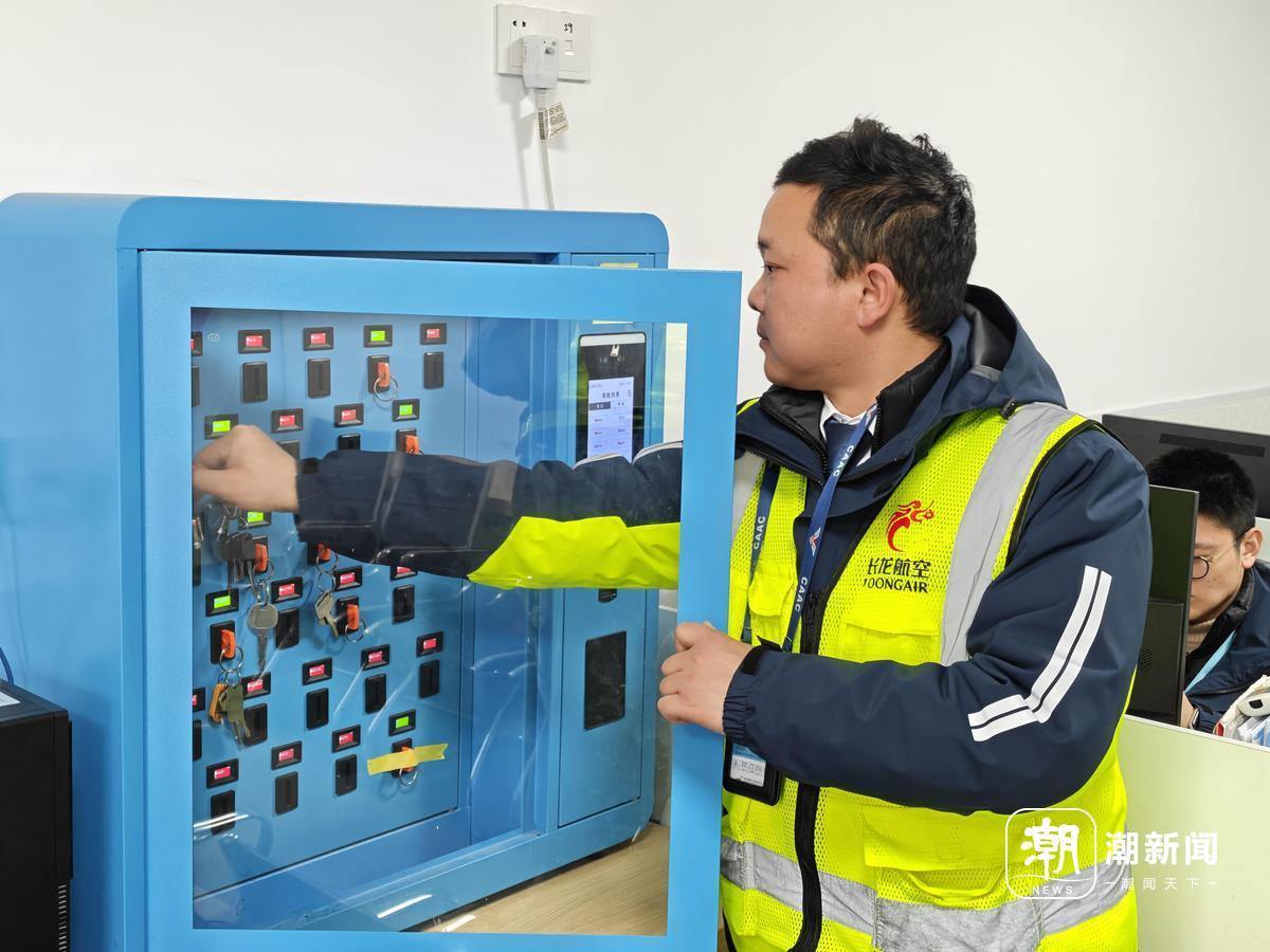 接到调度指令后,刚刚回到位于停机坪附近办公室的吕昌杰,立马起身,从智能钥匙柜中取出了一辆摆渡车的钥匙做出车前准备。