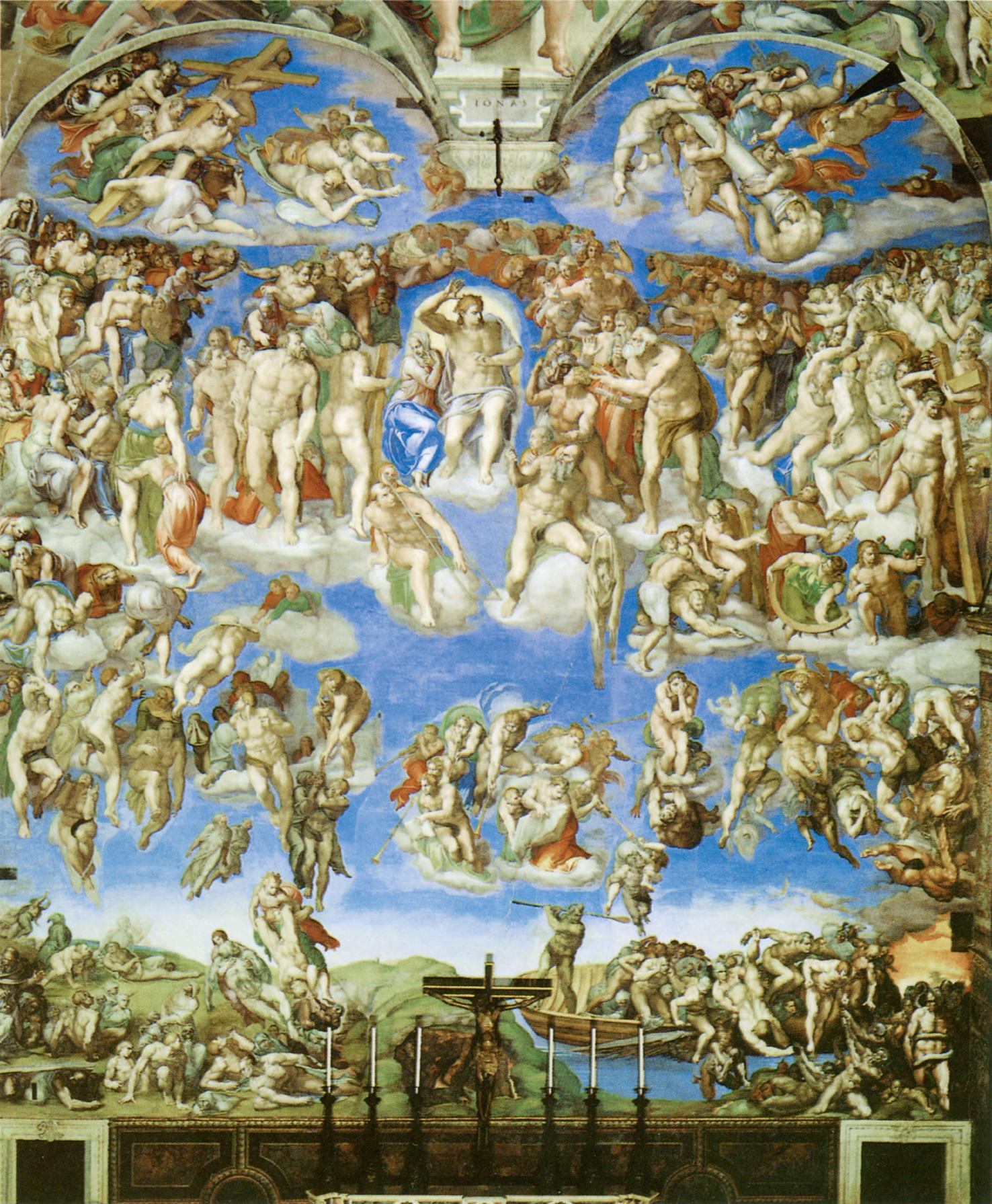 米开朗琪罗作品《最后的审判》(局部),展现了但丁《神曲》的世界观。(视觉中国)
