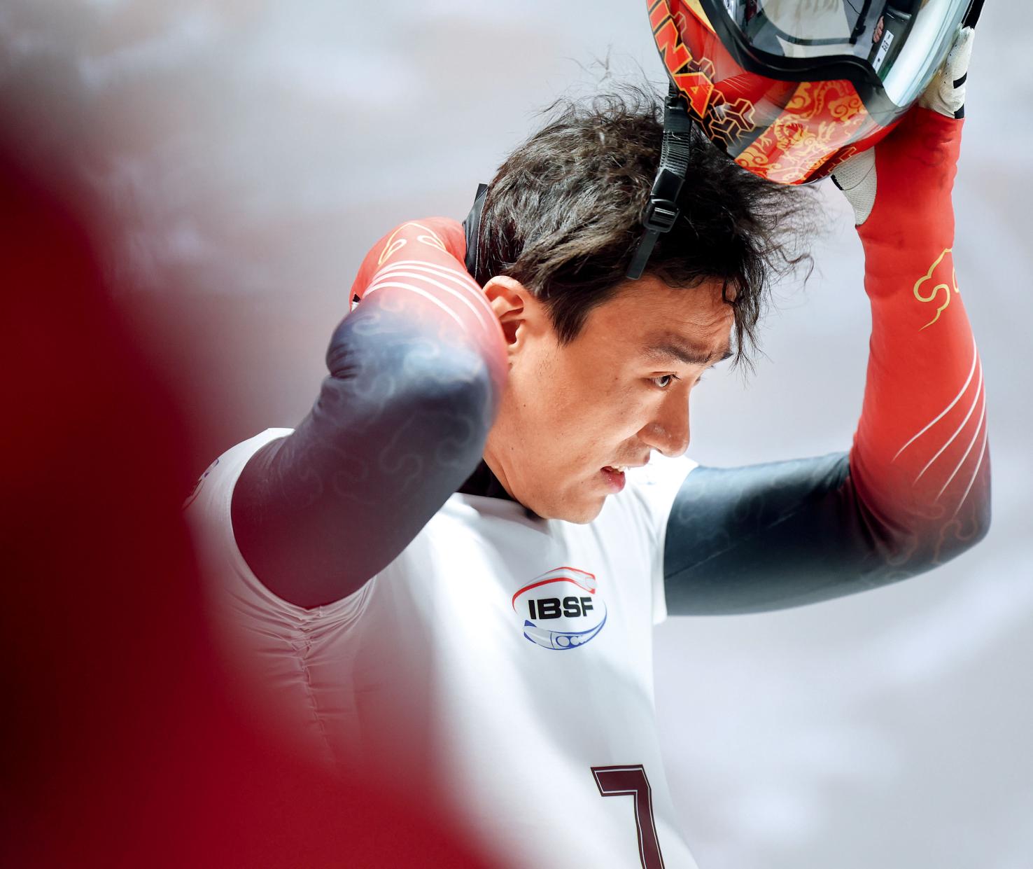 北京冬奥会上,殷正戴着一顶特别设计的头盔——红色基调、黄色中国风纹饰,设计灵感源自古代将军头饰。当他俯身推车时,头盔前方“眼睛”元素仿佛真的在凝视赛道。他滑出了4分2秒13的总成绩,获得第五名。更重要的是,他两度刷新赛道出发纪录。