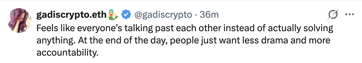“感觉大家都在各说各话,根本没人在真正解决任何问题。说到底,人们想要的不过是少点闹剧、多点责任。”↓