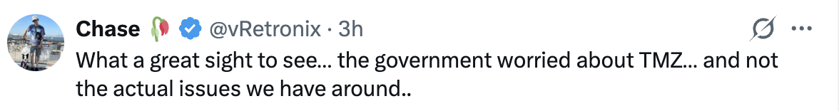 “真是一出‘好戏’……政府忙着操心TMZ(美国娱乐新闻网站)的八卦,而不是我们身边真正的问题。”↓