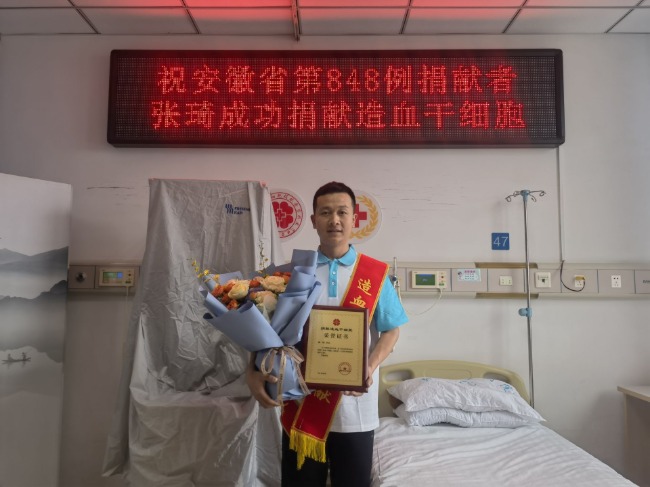 得知捐献前需在合肥住院准备5天,张琦提前合理规划,妥善安排好各项工作。“我是共产党员,是退伍军人,也是一名基层村干部,救人命的事,我要去做,更要一直做,在哪都是为人民服务。”张琦说。