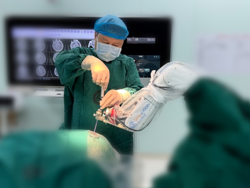 他介绍,这项微创手术无需开颅,只需在头部钻一个微小孔道,在机器人精准定位和多模态影像技术引导下抽吸血肿。“这种术式创伤小,效果明确,可显著加速患者的恢复,减少继发性神经功能损害。”