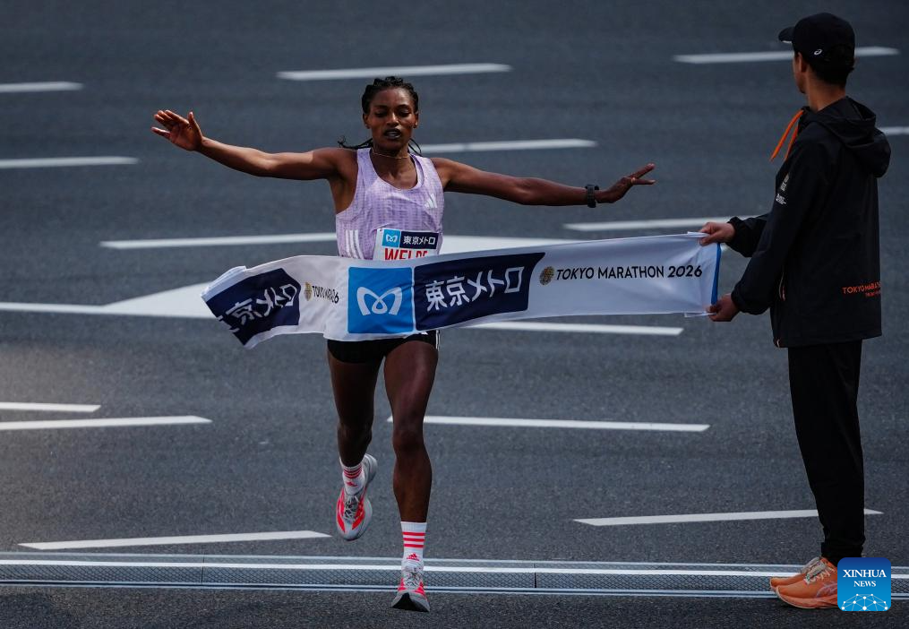 Bertukan Welde of Ethiopia competes in the women's elite race of the Tokyo Marathon in Tokyo, Japan, March 1, 2026. (Xinhua/Jia Haocheng)