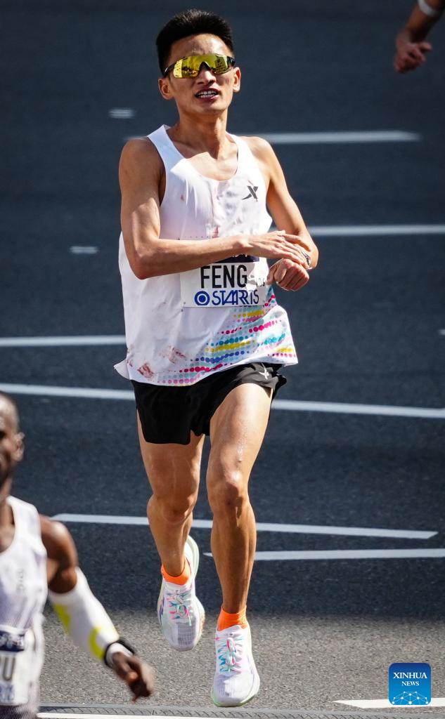 With clear skies and favorable temperatures, Feng finished 11th, ranked first among all Asian runners in the elite men's race, beating home favorites Suguru Osako and Kengo Suzuki.