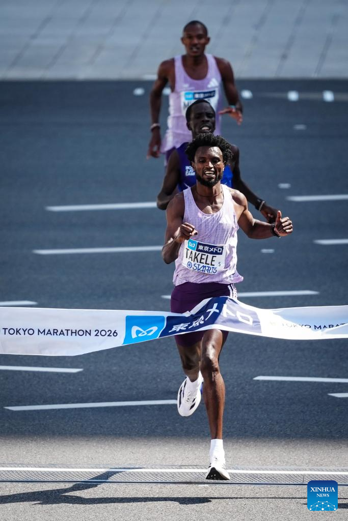 Tadese Takele of Ethiopia competes during the men's elite race of the Tokyo Marathon in Tokyo, Japan, March 1, 2026. (Xinhua/Jia Haocheng)