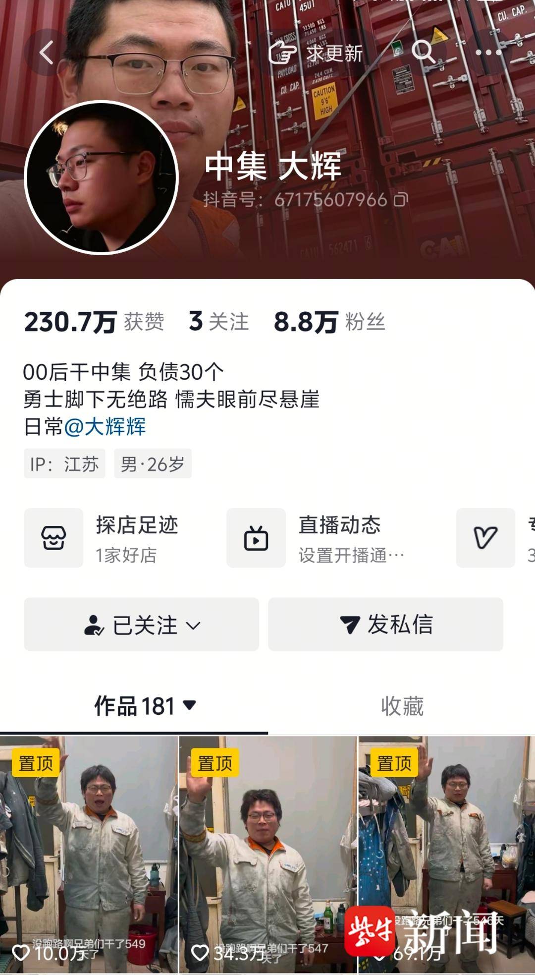“没跑路,兄弟们,干了546天,孩儿立志出乡关,学不身成誓不还......”一身抹着黑渍的褶皱工装,一脸疲惫后又满是激情,一腔慷慨激昂的声音,近乎吼着把古诗词背诵完,幷配文:“穷过、累过、哭过,就是没有怕过。”今年初,南通中集00后电焊工大辉火了,一条短视频播放量超3000万,赢得无数网友点赞叫好。有网友评论:“他下班之后居然能眼里有光、慷慨激昂。”
