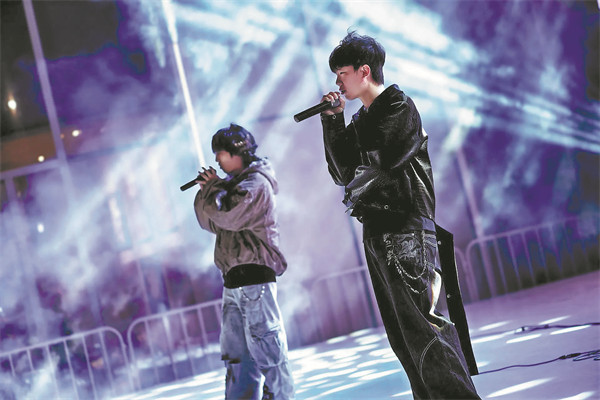 On New Year's Eve 2025, Zhou Ke (left) and Yi Le (right) performed at a shopping mall in Xiamen. [Photo provided to China Daily]