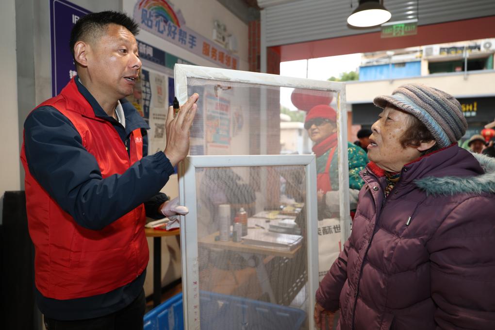在3月初进行的“学雷锋”活动中,杨茶生与需要换窗纱的老人沟通。新华社记者 王翔 摄