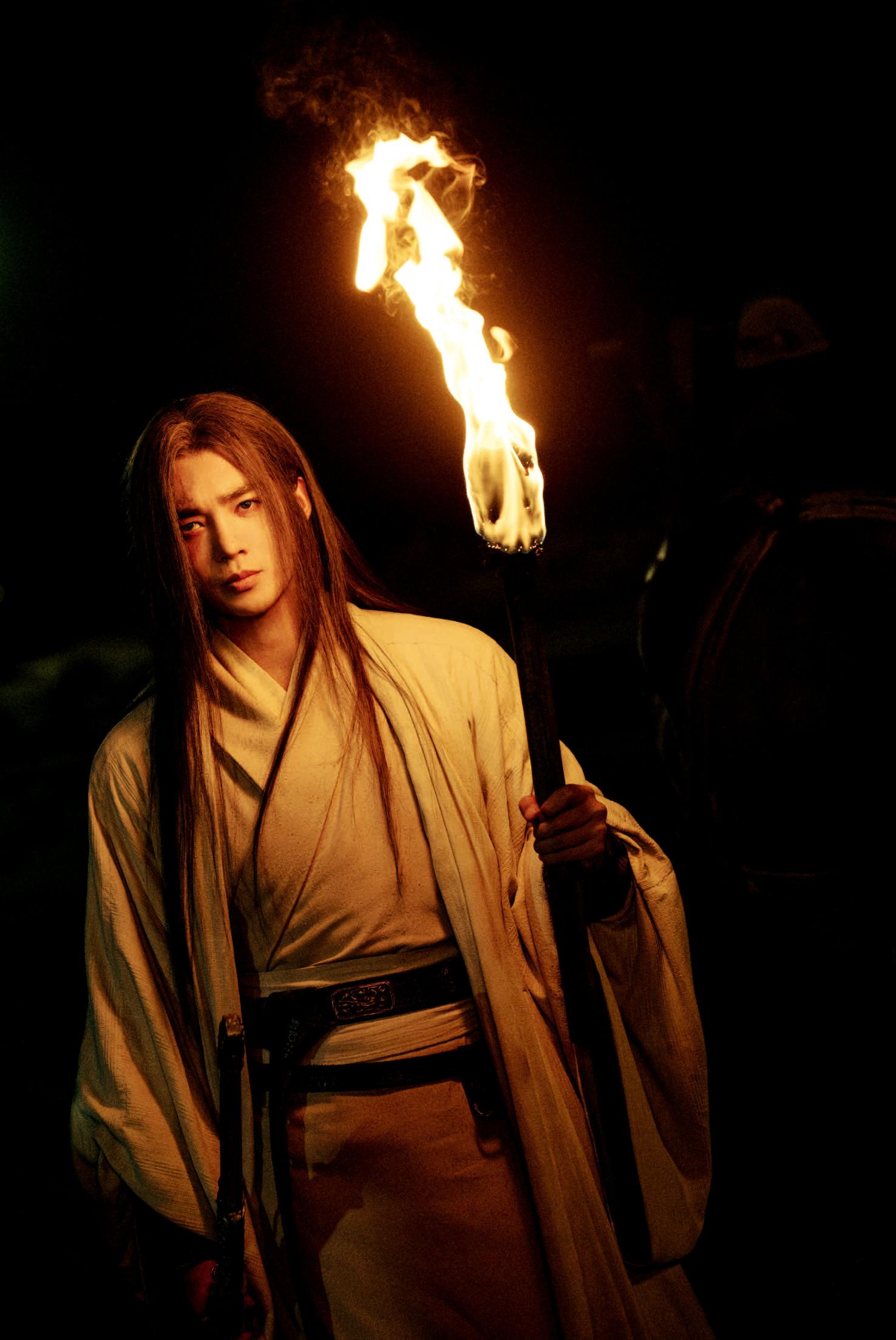 在片场,于适把所有碎片时间都拿来练动作,练到最后甚至有了“刀人一体”的感觉。片中重头戏火把刀战,他需要左手持火把,右手握长刀,稍有不慎便会被灼伤,动作的精准度和力度都必须反复练习。一场戏拍完,筋疲力尽。